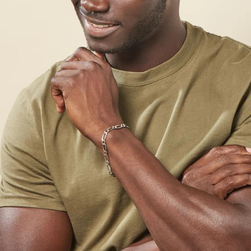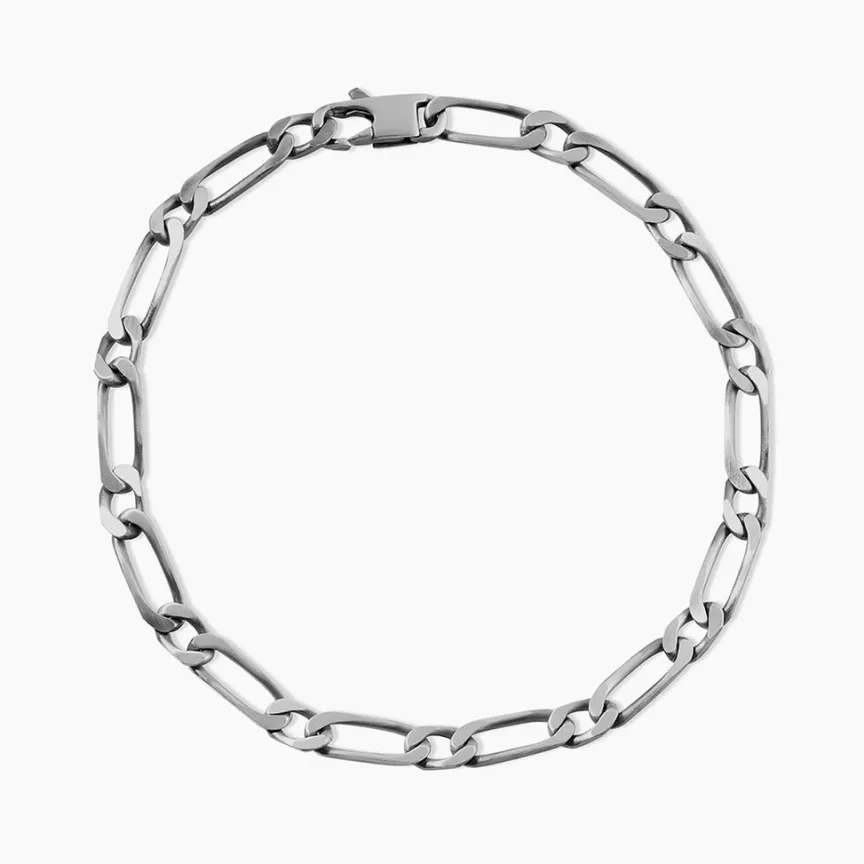 Bracelet Argent Blanc 925/1000 Maille Alternee 1/1 Noircie Epaisseur 5mm 22.5cm