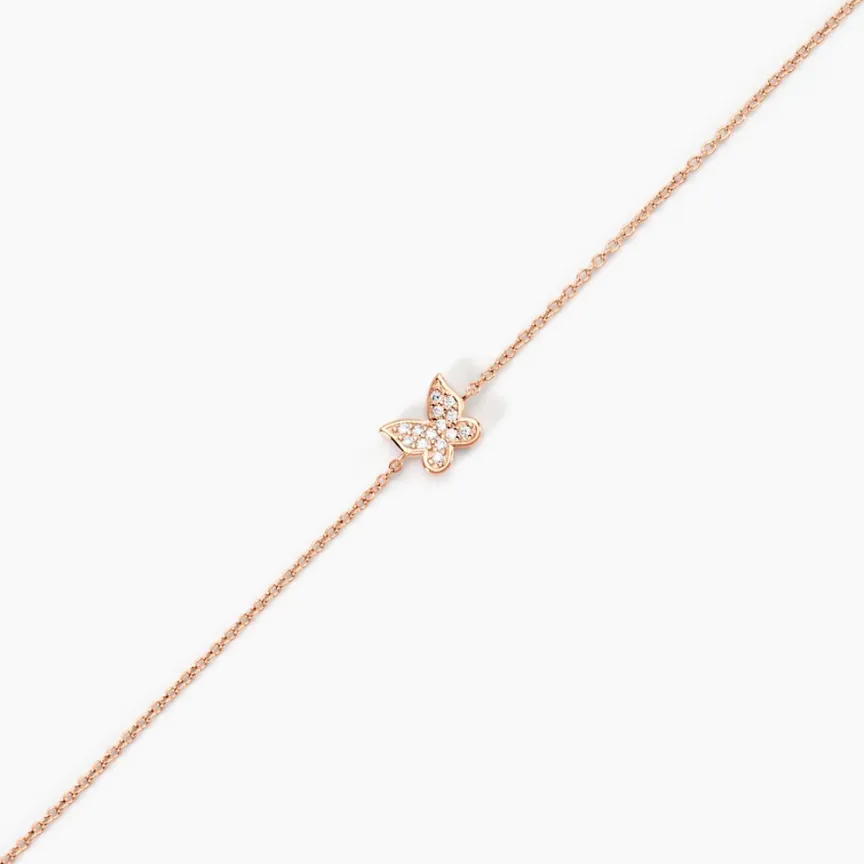 Bracelet Argent Rose 925/100 Rose Motif Papillon Pavage Oxydes De Zirconium 18.5cm