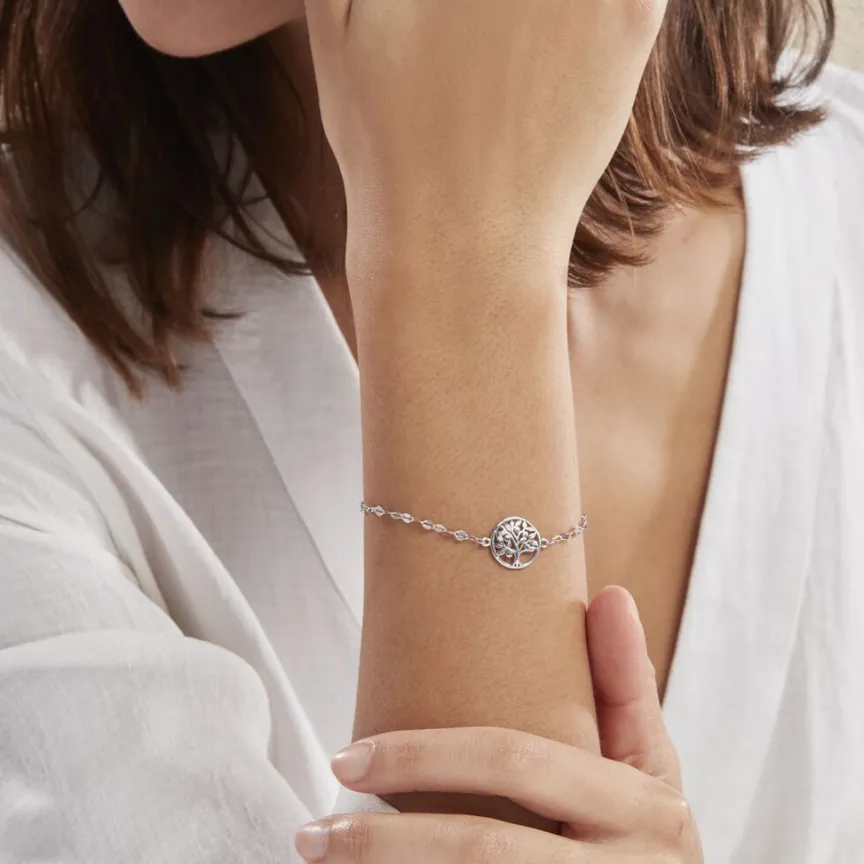 Bracelet Argent Blanc 925/1000 Arbre De Vie Maille Lumina 19cm