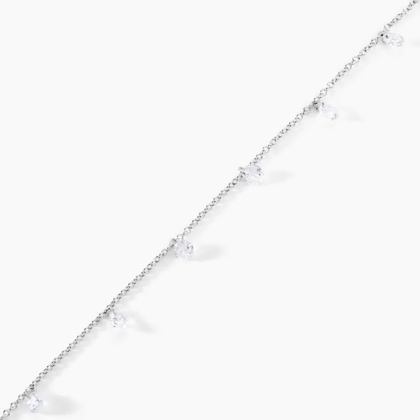 Bracelet Argent 925/1000 collie 6 Gouttes Oxydes De Zirconium Perces Maille Forcat 19cm