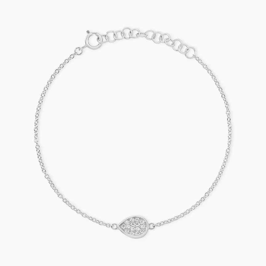 Bracelet Argent 925/1000 tricoria Goutte Pavage Oxydes De Zirconium Maille Forcat 18cm