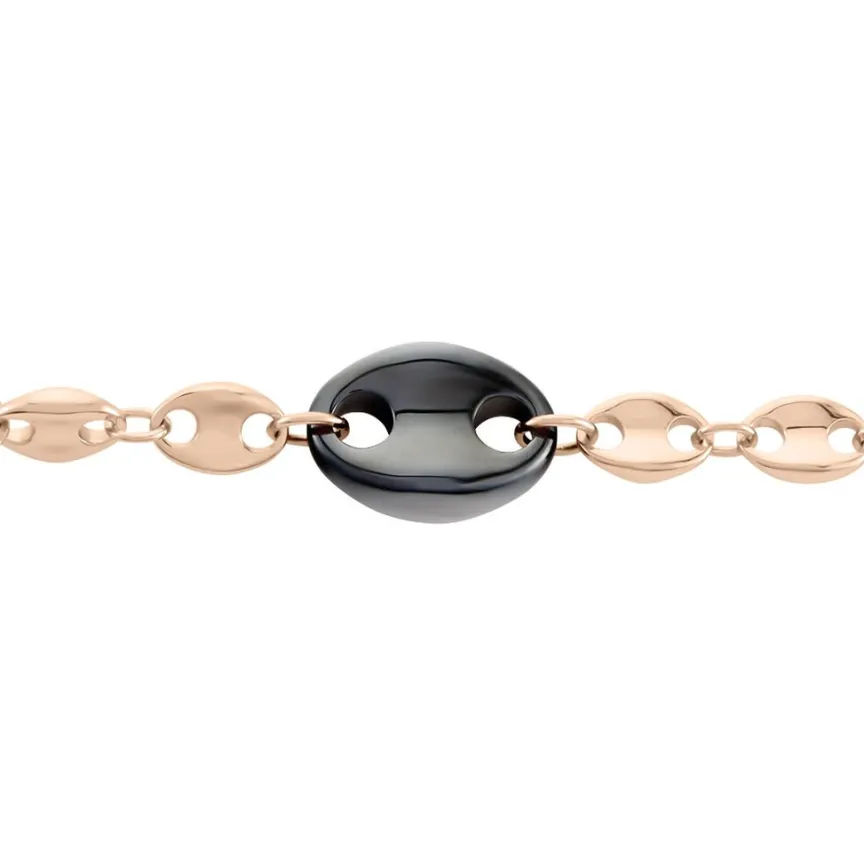 Bracelet Argent Rose 925/1000 Grain De Café Céramique Noire Maille Grain De Café 19cm
