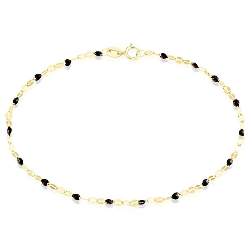 Bracelet Or Jaune 375/1000 Email Noir Maille Lumina 16+2cm