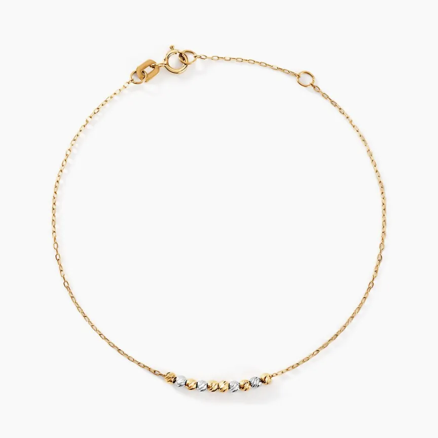 Bracelet Or Bicolore 375/1000 Alternance Boules Jaunes Et Blanches Maille Forcat 16+2cm