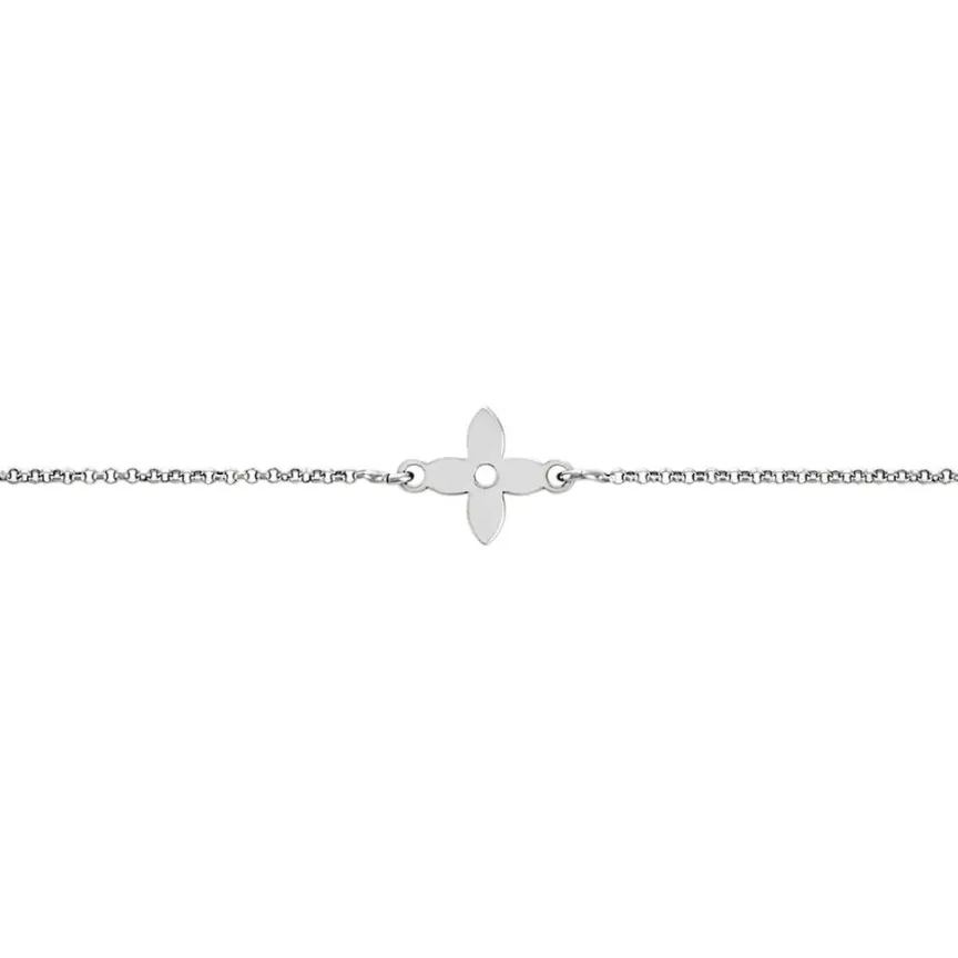 Bracelet Argent Blanc 925/1000 Motif Fleur Maille Forçat 20cm