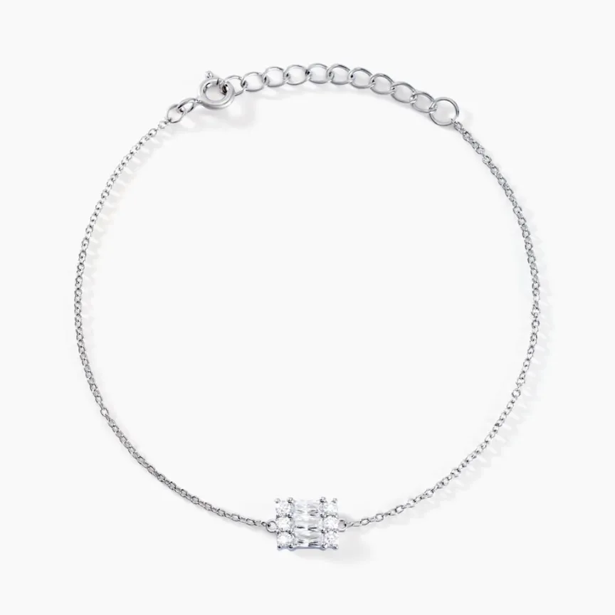 Bracelet Argent Blanc 925/1000 Oxydes De Zirconium Taille Baguette Maille Forcat 16+3cm