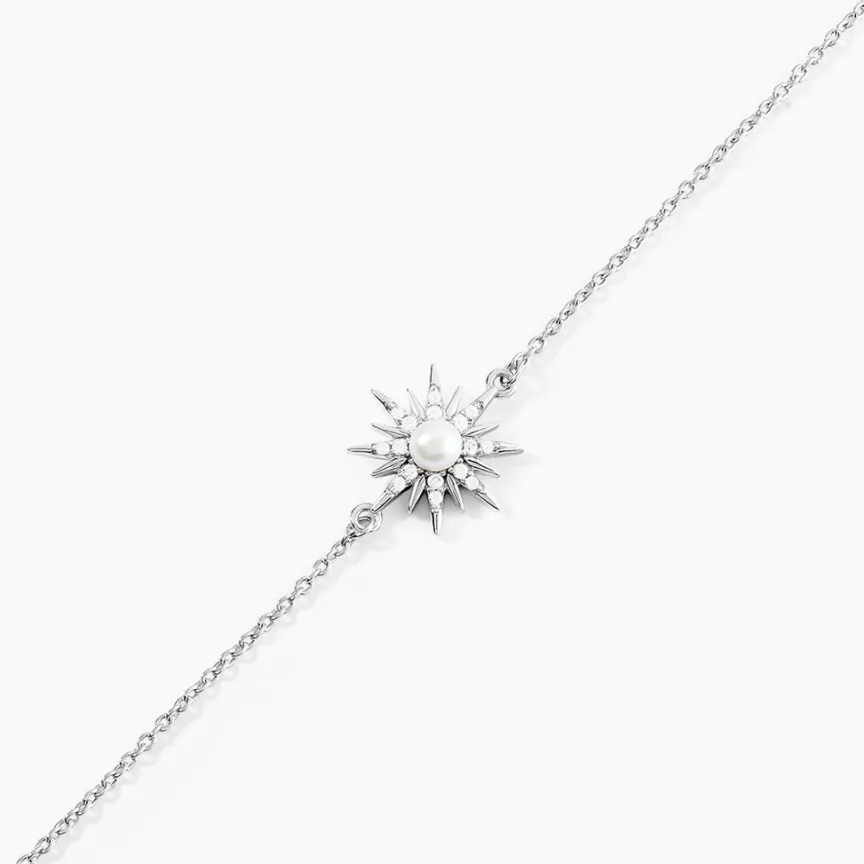 Bracelet Argent Blanc 925/1000 Forme Etoile Perle De Culture Nacre Pavage Oxydes De Zirconium 18.5cm