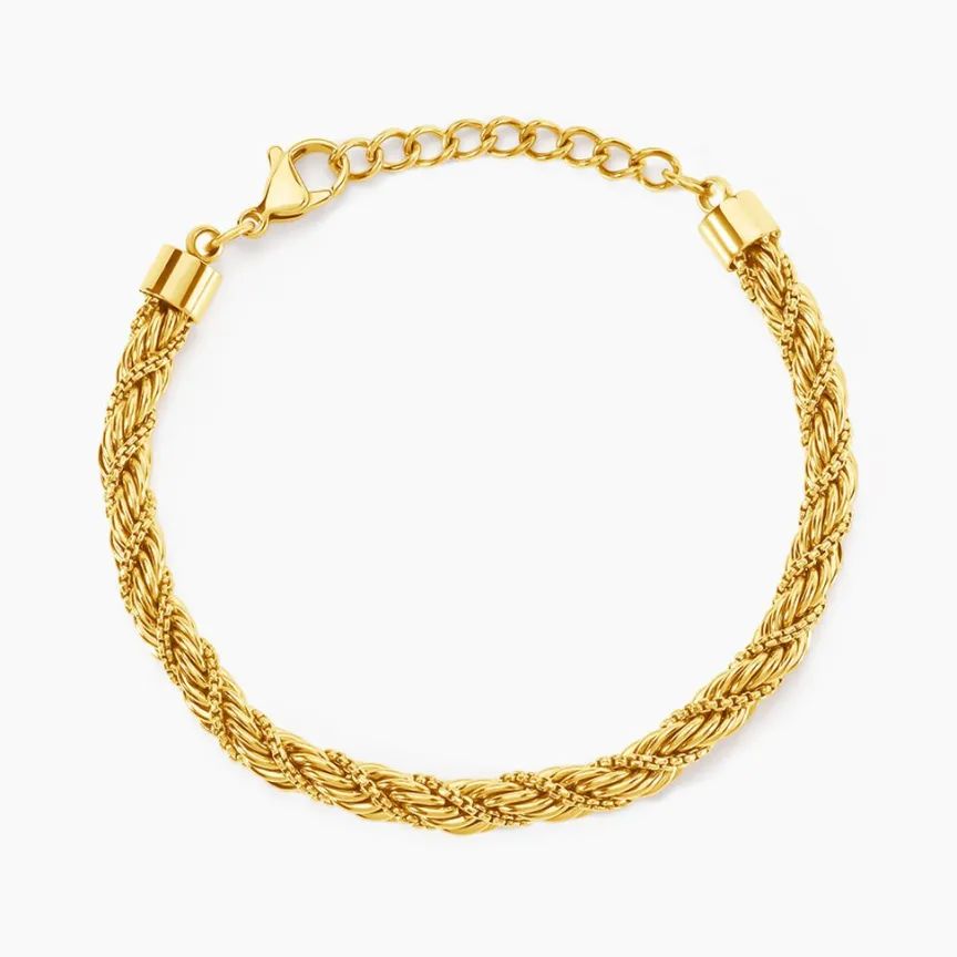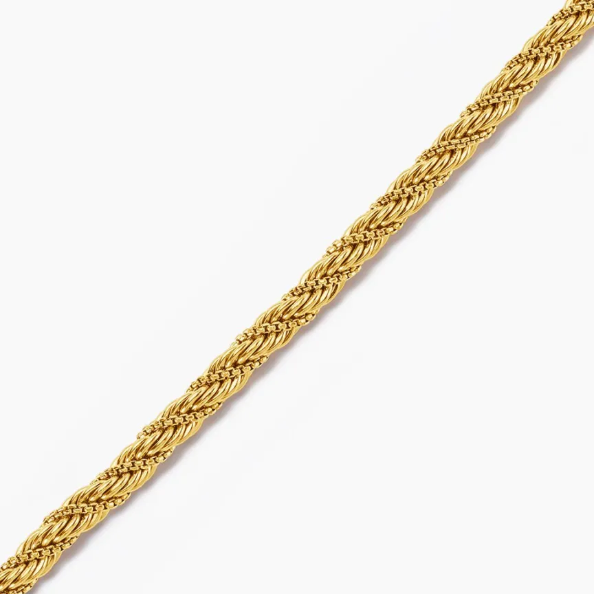 Bracelet Acier Inoxydable Jaune Maille Corde Effet Torsadé Largeur 5mm Longueur 16+3cm