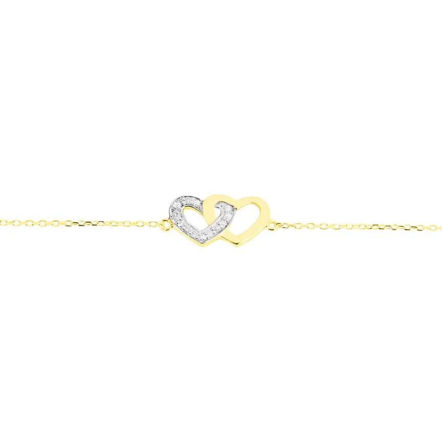 Bracelet Or Jaune 375/1000 C艙ur Double Pavage Diamants 18cm