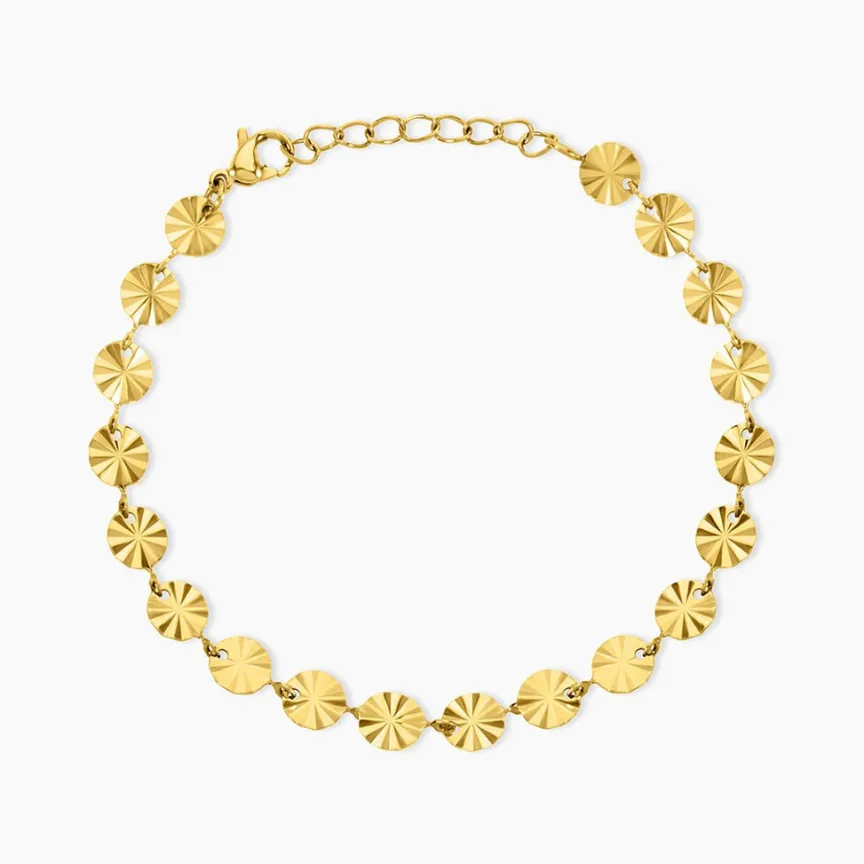Bracelet Acier Inoxydable Jaune Pastilles Effet Texturé Maille Fantaisie Largeur 6Mm 16+3Cm