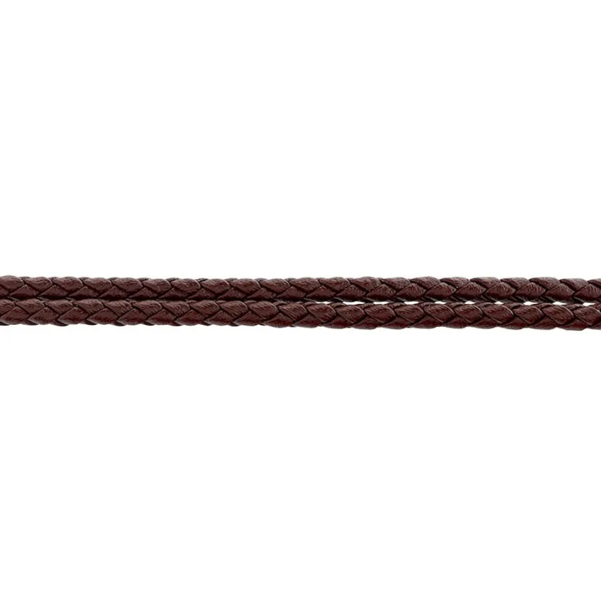 Bracelet Acier Inoxydable Blanc Cuir Marron Double Tours 42cm