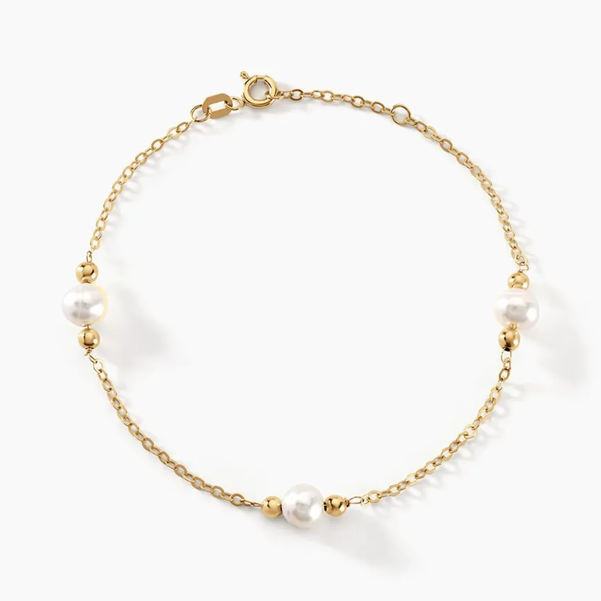 Bracelet Or Jaune 375/1000 Perles De Culture 6.5mm 19cm