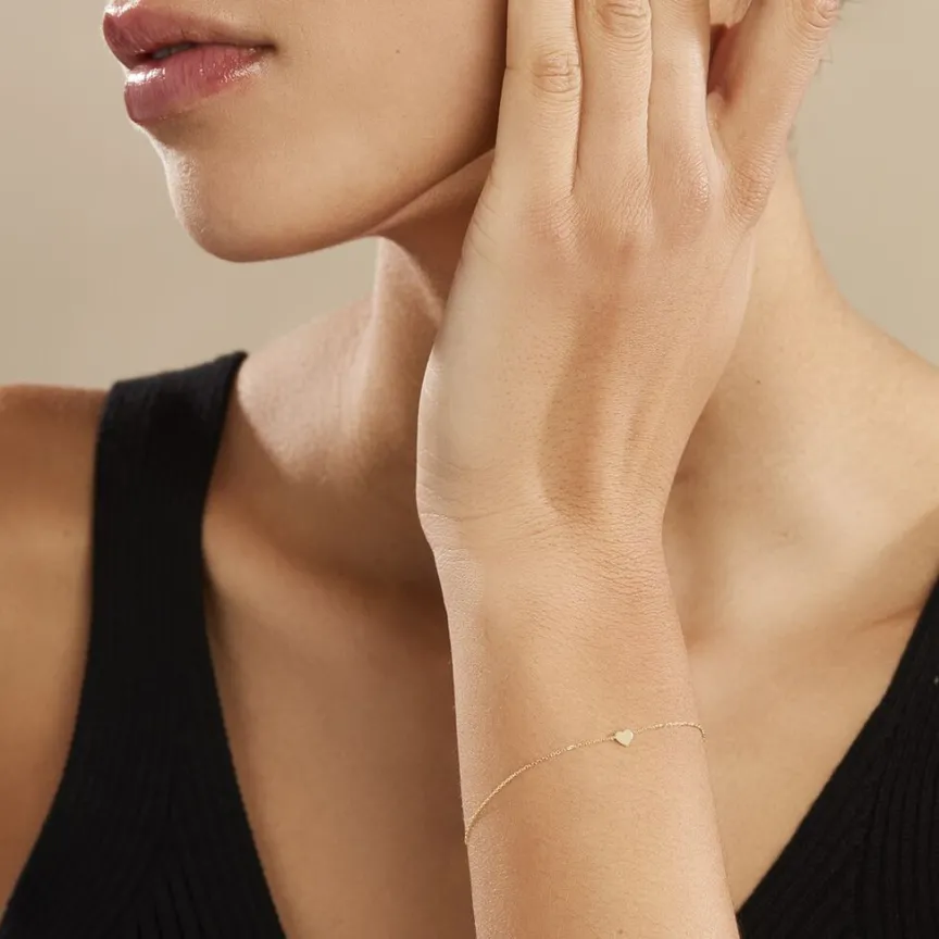 Bracelet Or Jaune 375/1000 Pastille C艙ur Pm Maille Jaseron 16cm