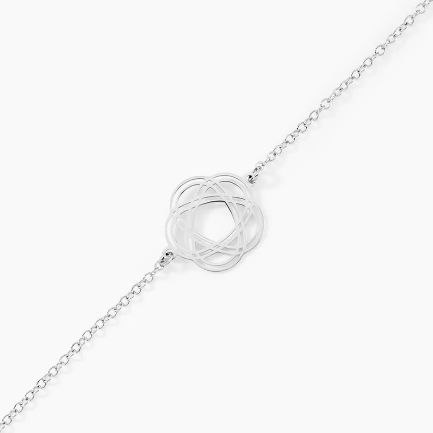 Bracelet Argent Blanc 925/1000 Fleur Ajouree Maille Forcat 19cm