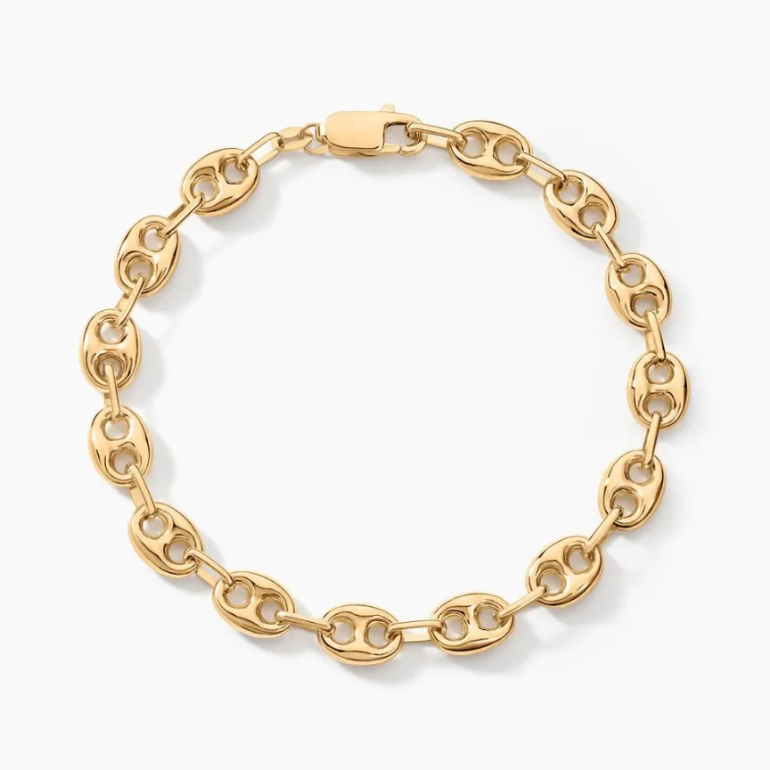 Bracelet Or Jaune 375/1000 Maille Grain De Café 7.5mm 21cm