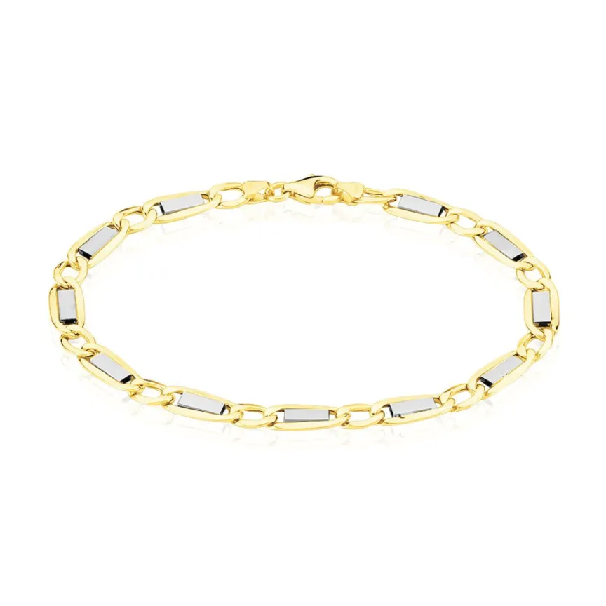 Bracelet Or Bicolore 375/1000 Maille Plaquette 5.6mm 19cm