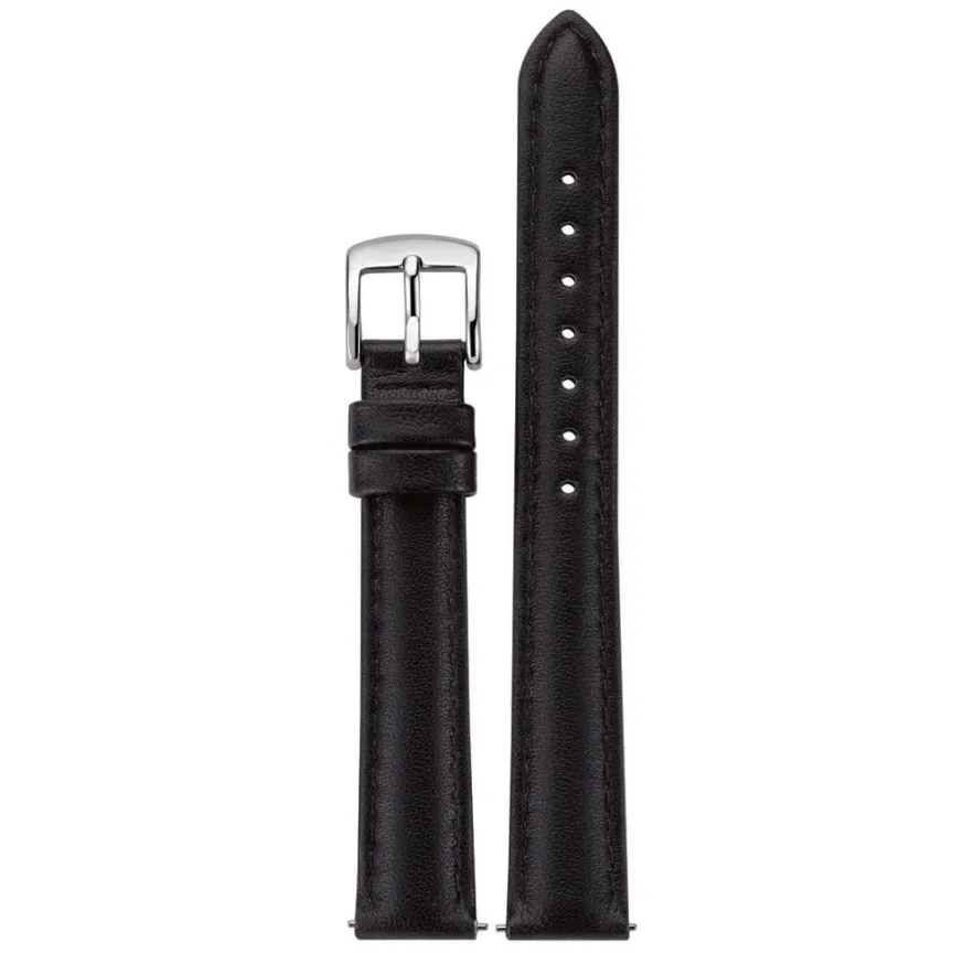 Bracelet De Montre Rochet Cuir D’agneau Mat Noir Boucle Argentée 14/12mm