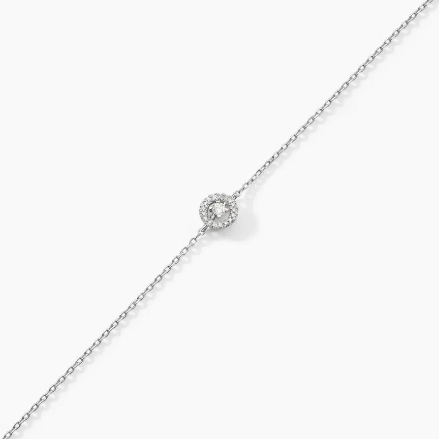 Bracelet Or Blanc 375/1000 Entourage Diamant 0.02cts 18.5cm