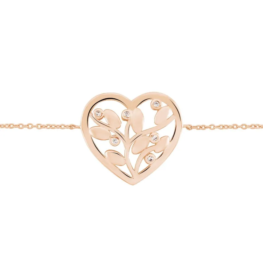 Bracelet Argent Rose 925/1000 C艙ur Rempli D’un Arbre De Vie Sertis Clos Oxydes De Zirconium 18.5cm