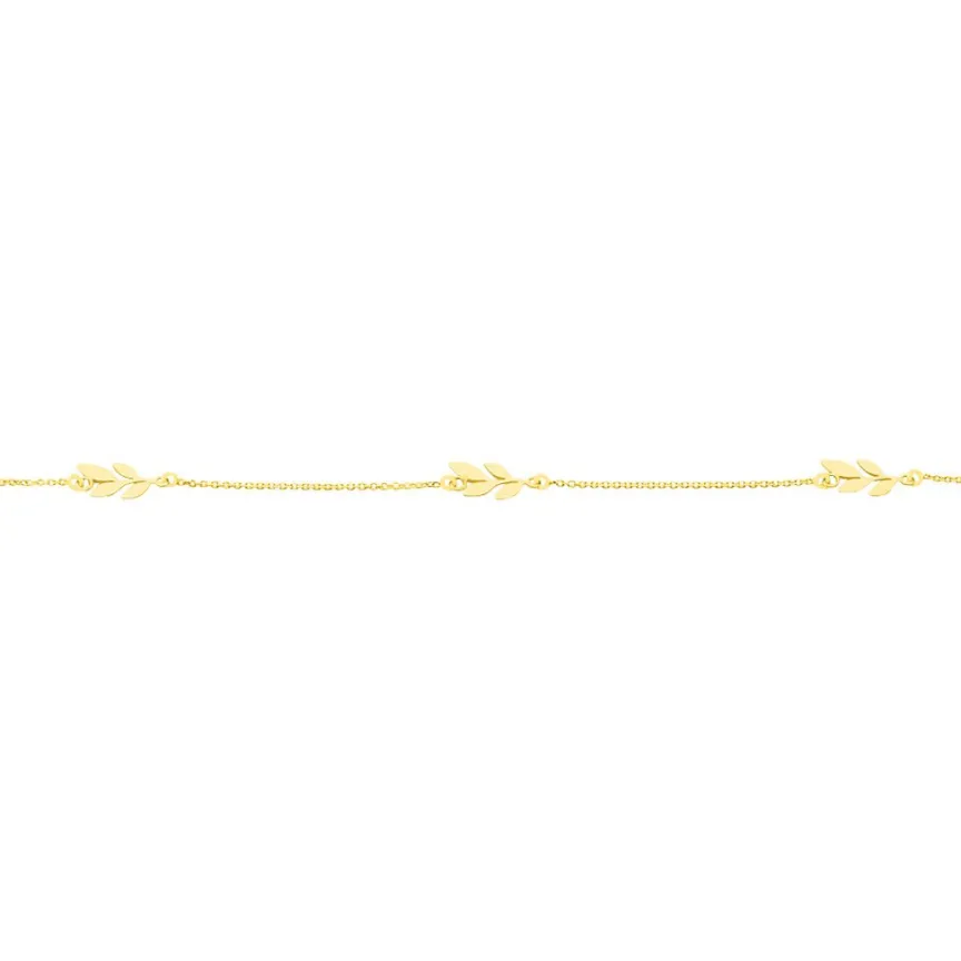 Bracelet Or Jaune 375/1000 Motif Feuille Maille Jaseron 18cm