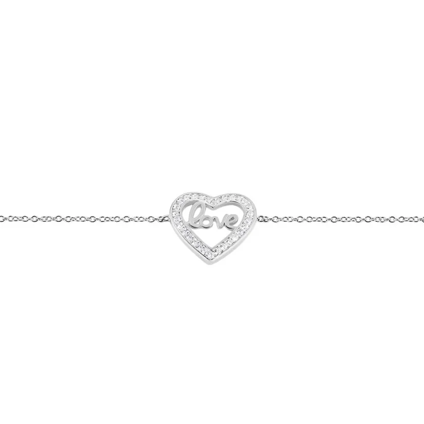 Bracelet Argent 925/1000 elansa Motif Love Coeur Ajoure Avec Oxydes De Zirconium 18.5cm