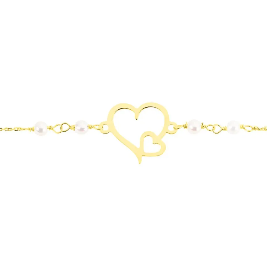Bracelet Or Jaune 375/1000 C艙ur Et Perles De Culture 18cm