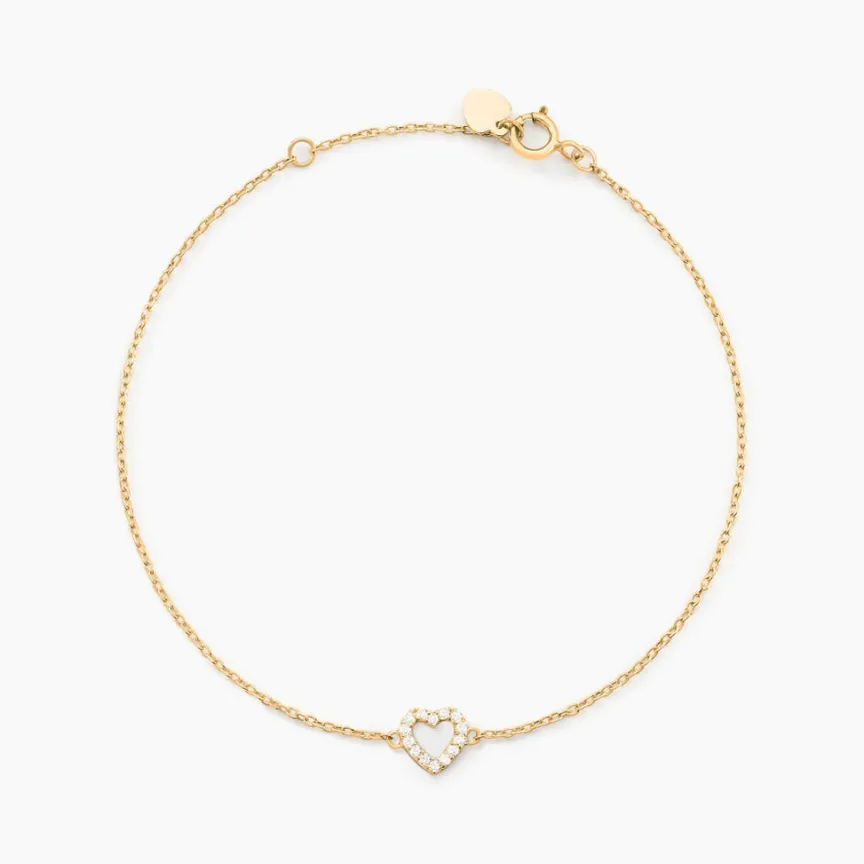 Bracelet Or Jaune 375/1000 C艙ur Oxydes De Zirconium Pm 18cm