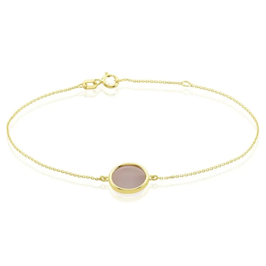 Bracelet Or Jaune 375/1000 Cercle Calcedoine Abricot Maille Jaseron 16+2cm