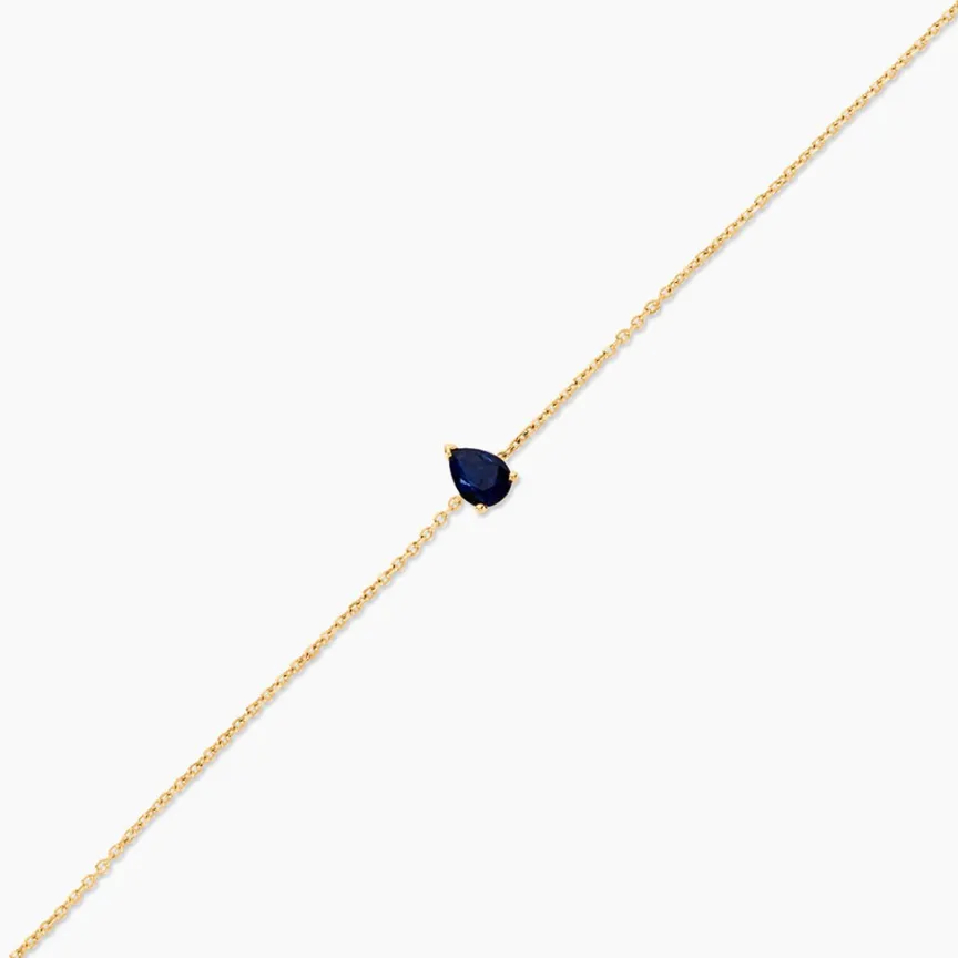Bracelet Or Jaune 750/1000 Solitaire Saphir Poire 0,34Cts Serti 3 Griffes Maille Forcat 16+2Cm