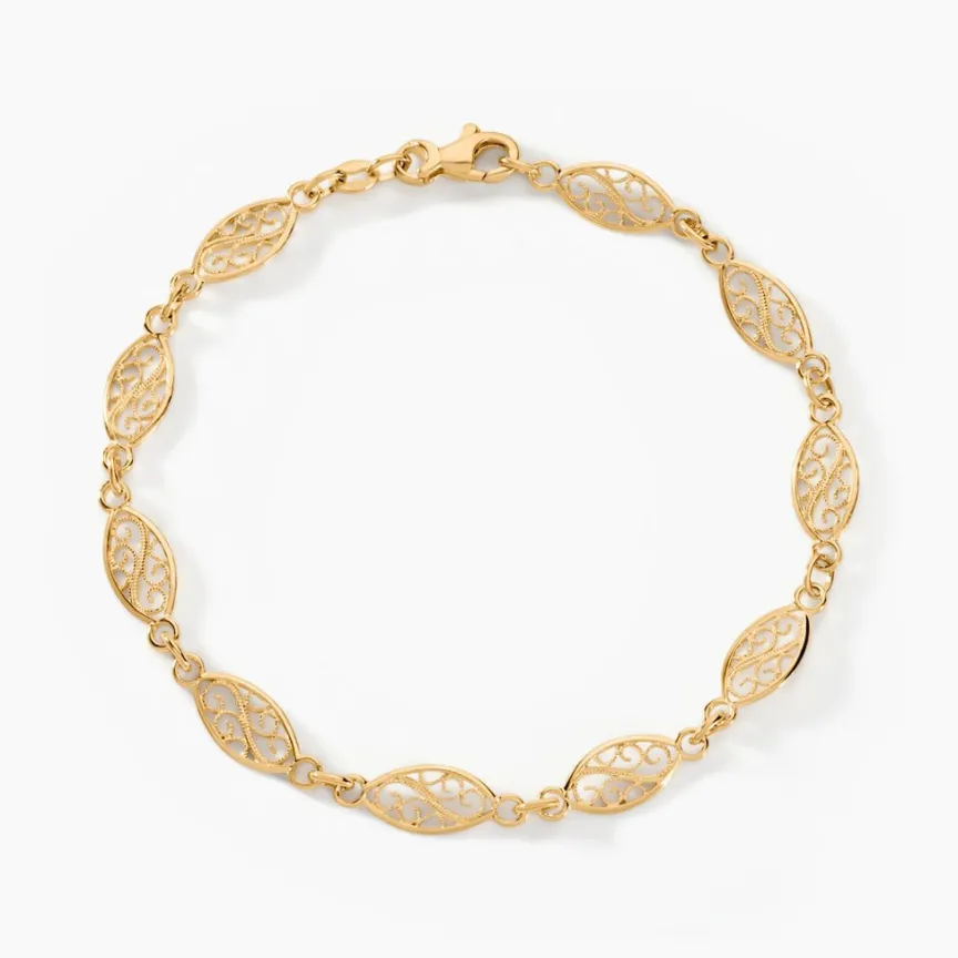Bracelet Or Jaune 375/1000 Maille Filigrane 19cm