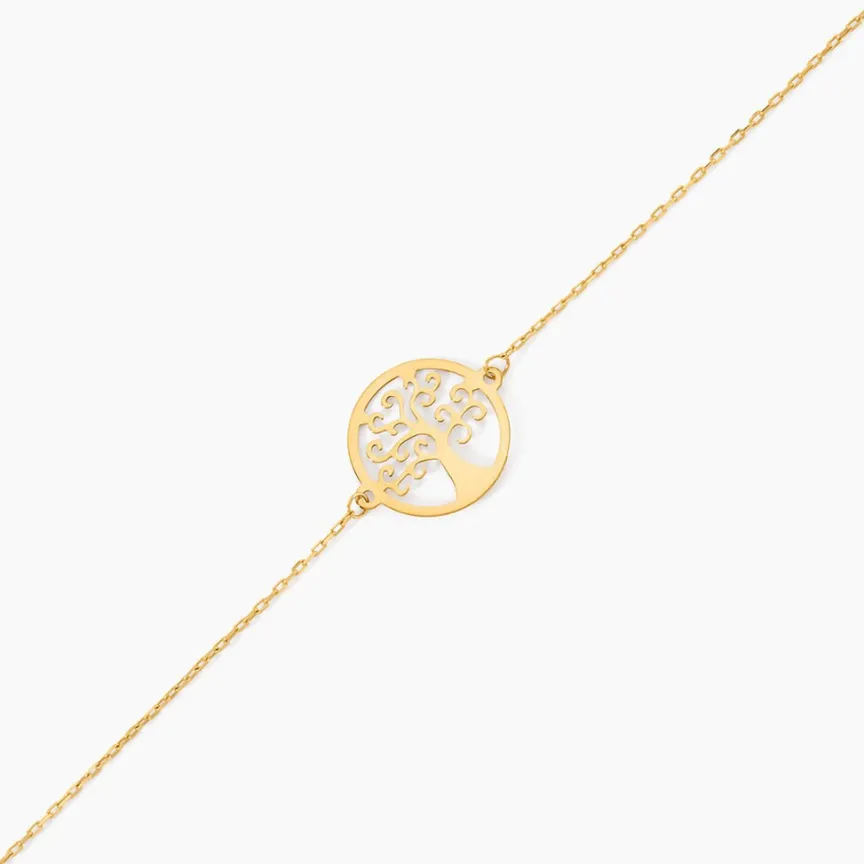 Bracelet Or Jaune 375/1000 Arbre De Vie Maille Forcat 16+2Cm