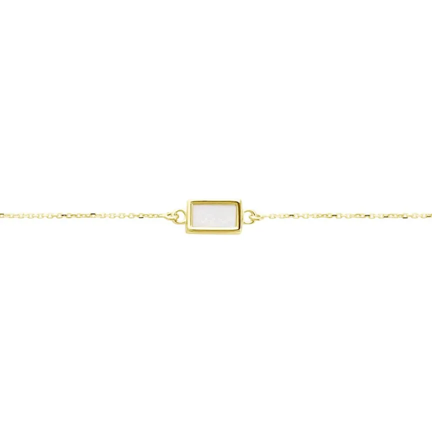 Bracelet Or Jaune 375/1000 Nacre Rectangle Maille Jaseron 16+2cm