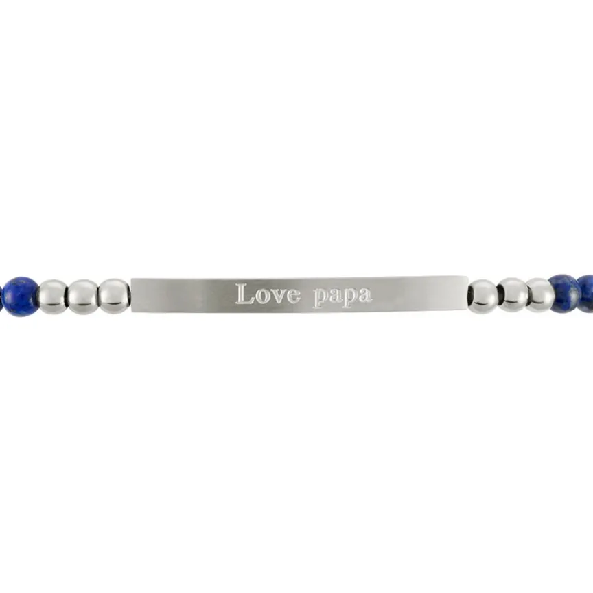 Bracelet Identite Acier Inoxydable Blanc Boules Message Love Papa Lapis Lazuli 18.5+3cm