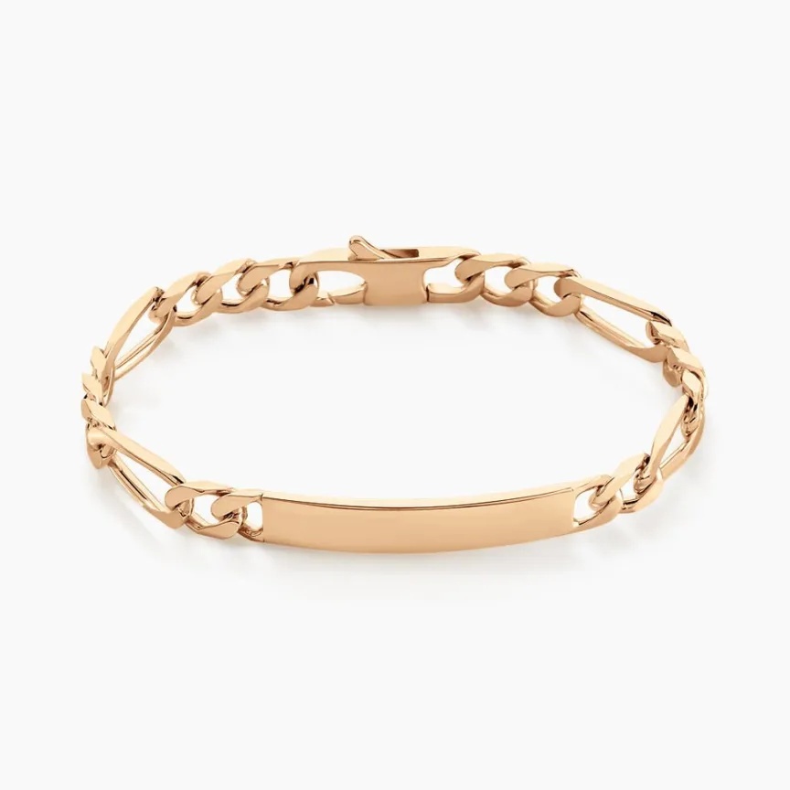Bracelet Identite Plaque Or Jaune Maille Alternee 1-3 6mm 20cm