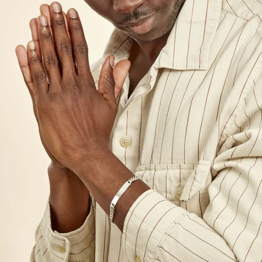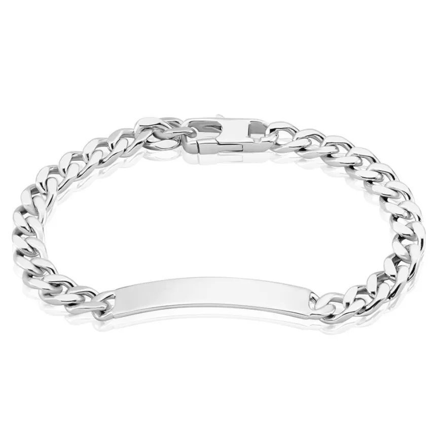 Bracelet Identite Argent Blanc 925/1000 Maille Gourmette Largeur 6mm Longueur 19cm