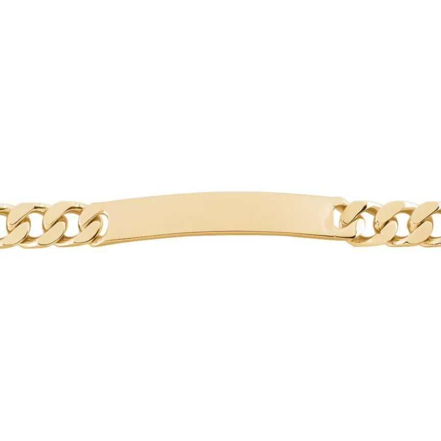 Bracelet Identite Plaque Or Jaune Maille Gourmette 8mm 21cm