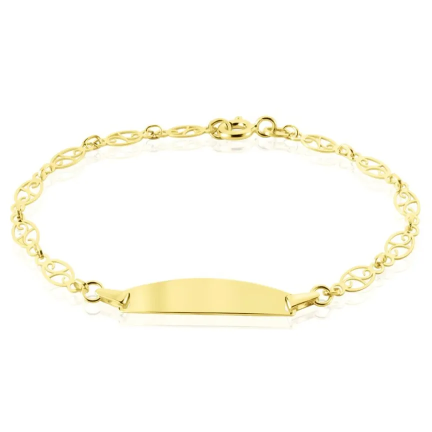 Bracelet Identite Bebe Or Jaune 375/1000 Plaque Ovale Maille Filigrane 13/15cm