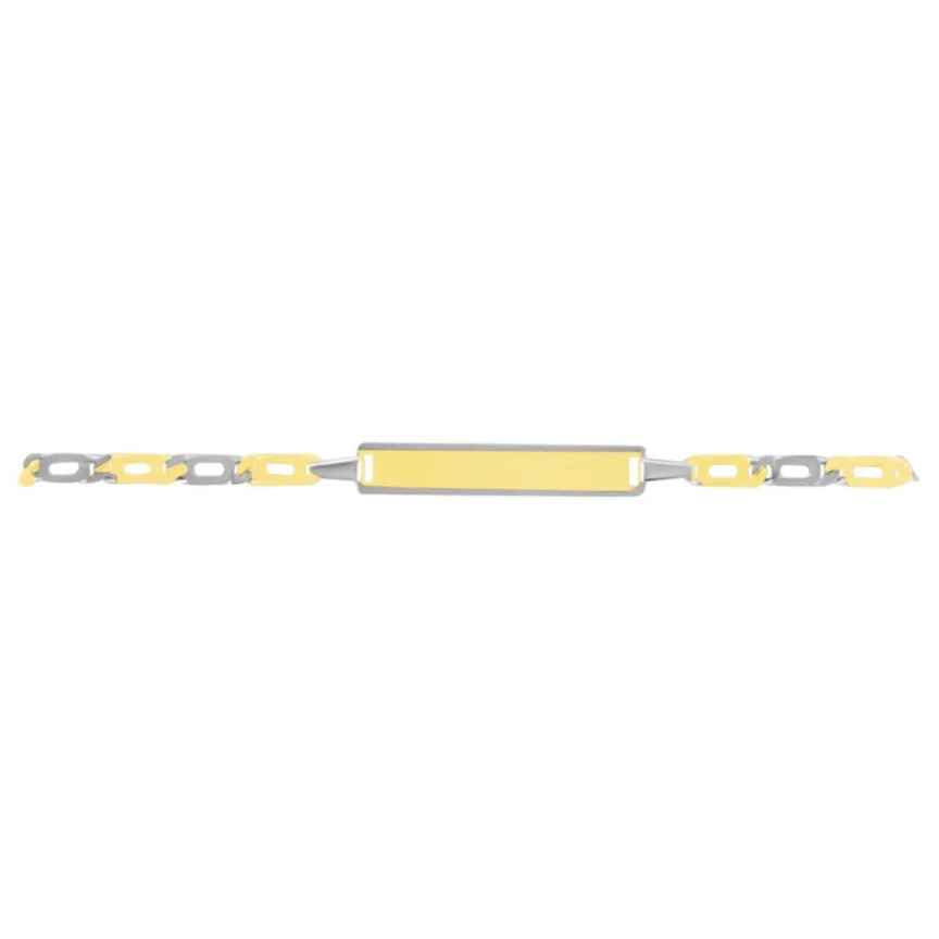 Bracelet Identité Bebe Or Bicolore 375/1000 Plaque Rectangle Maille Marine 16cm