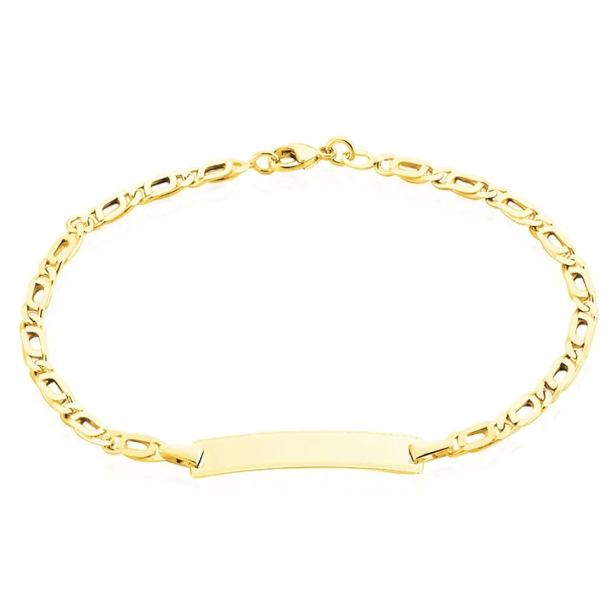 Bracelet Identité Bebe Or Jaune 375/1000 Plaque Rectangle Ciselée Maille Marine 18cm