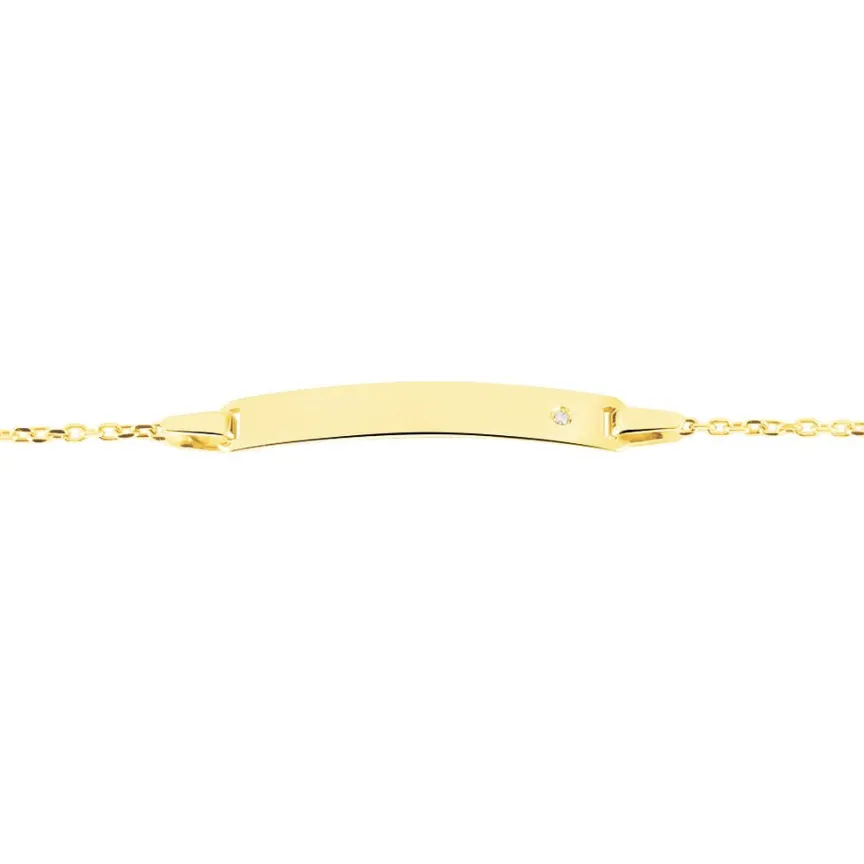 Bracelet Identité Bebe Or Jaune 375/1000 Plaque Rectangle Maille Forçat Oxyde De Zirconium 14cm