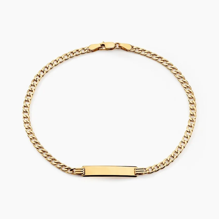 Bracelet Identite Or Jaune 375/1000 Plaque Rectangle Gravable Maille Gourmette Largeur 3.2mm 18cm