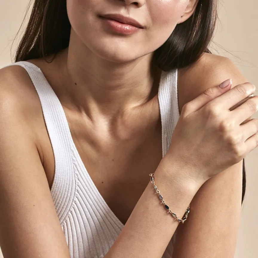 Bracelet Plaqué Or Jaune Alterne Pierres Bleus 18cm