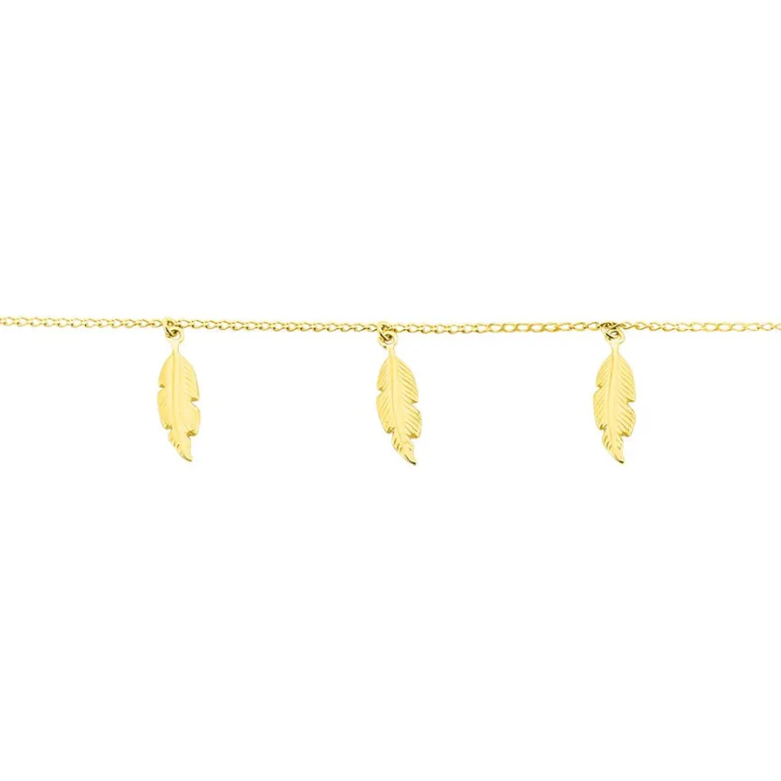 Bracelet Or Jaune 375/1000 Pampilles Triple Feuilles Maille Cheval 18.5cm