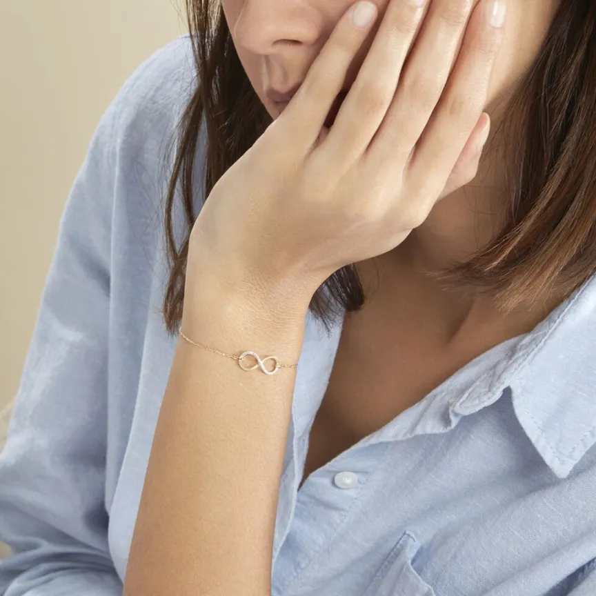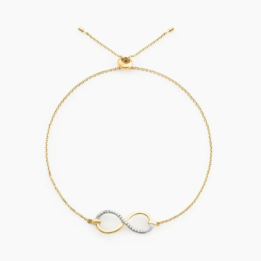 Bracelet Ajustable Or Jaune 375/1000 Forme Infini Avec Un Cote Pave Diamants