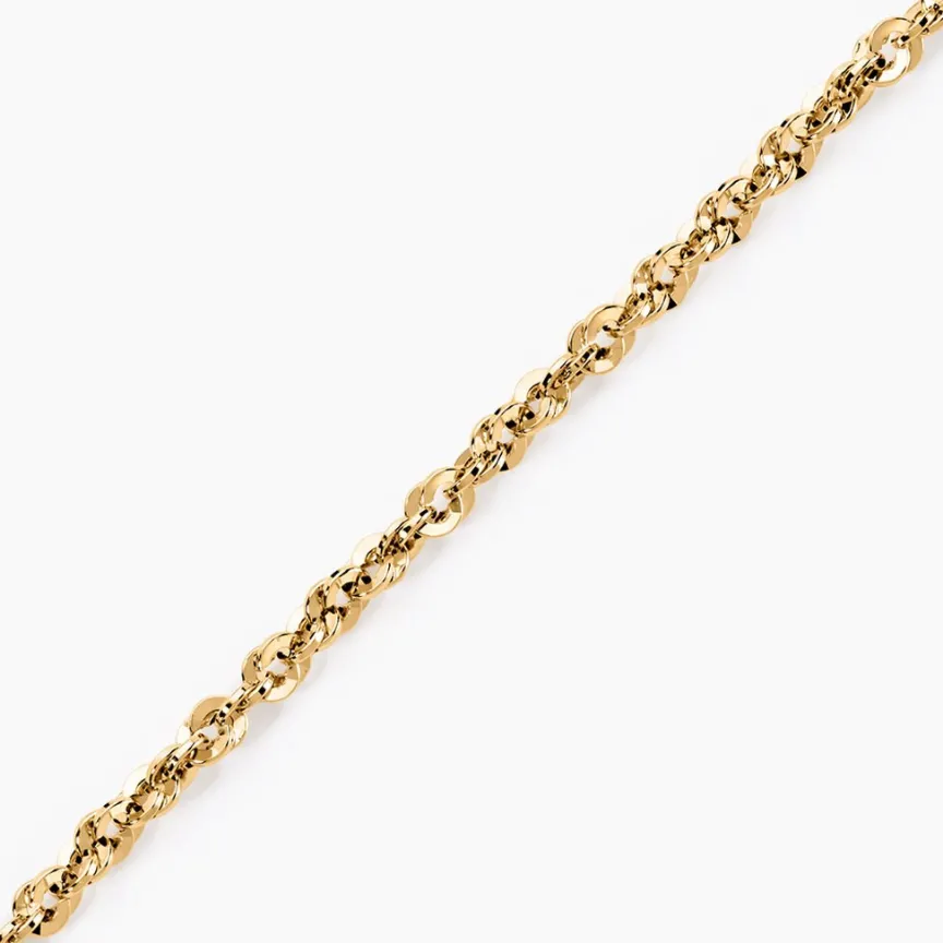Bracelet Or Jaune 375/1000 Maille Corde Facettee 3.6mm 18cm