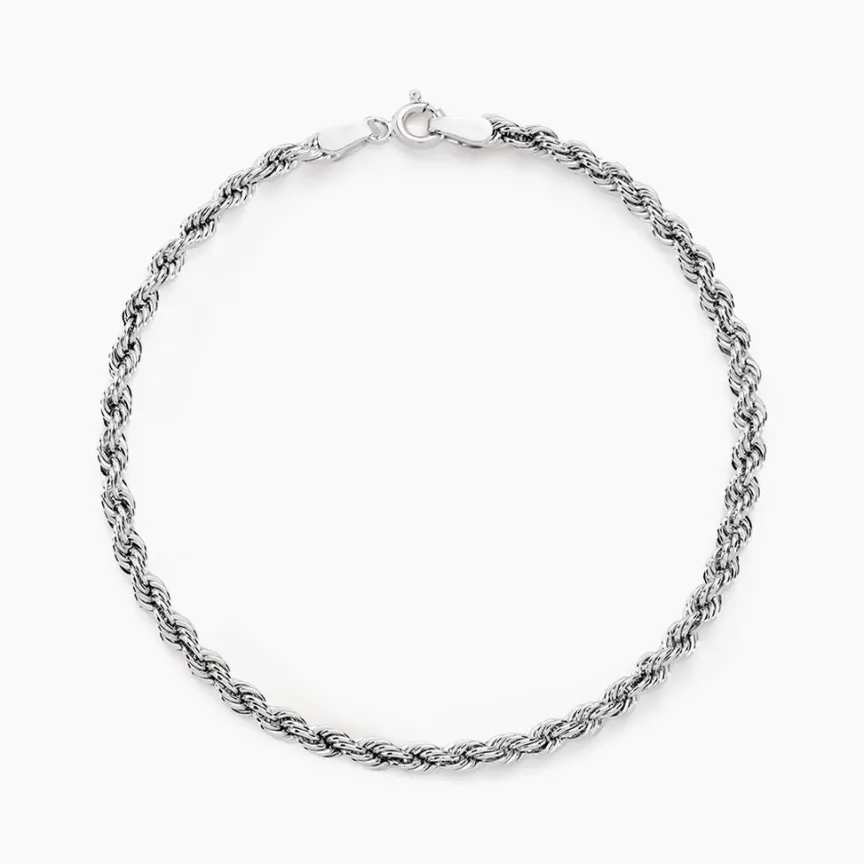 Bracelet Or Blanc 375/1000 Maille Corde 3.5mm 18cm
