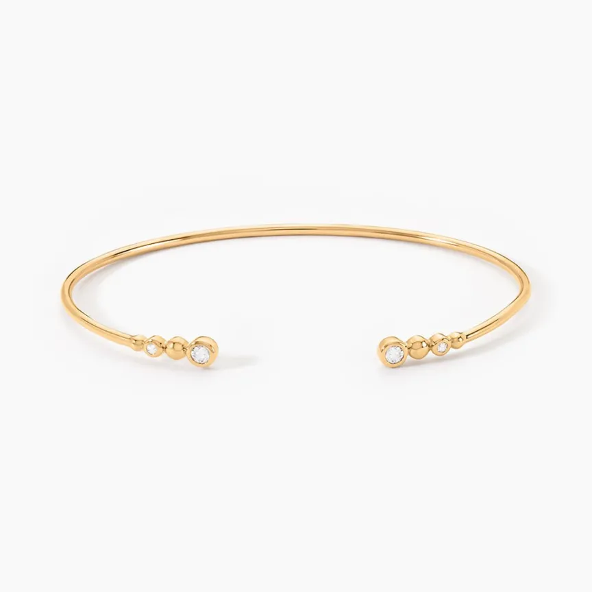 Bracelet Jonc Ouvert Plaqué Or Jaune Doules Et Oxydes De Zirconium Serti Clos Diamètre 58Mm