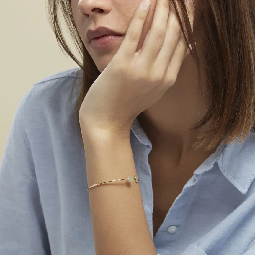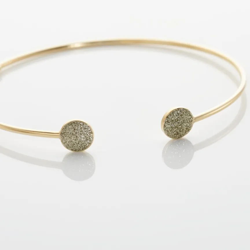 Bracelet Jonc Or Jaune 375/1000 Double Pastilles Glitter Dore