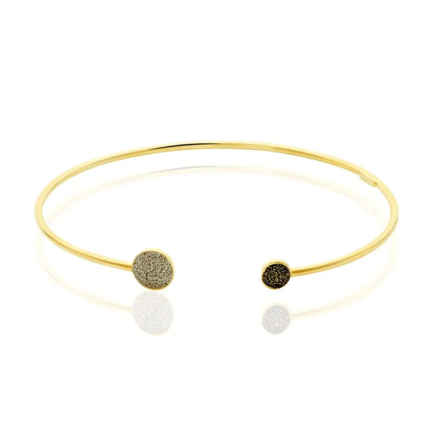 Bracelet Jonc Or Jaune 375/1000 Double Pastilles Glitter Dore Et Bronze