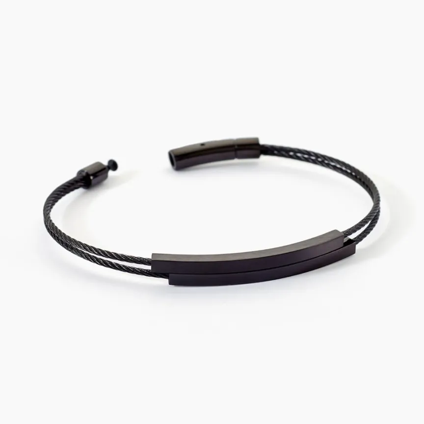 Bracelet Jonc Acier Inoxydable Noir Rectangle Cable 60*50Mm